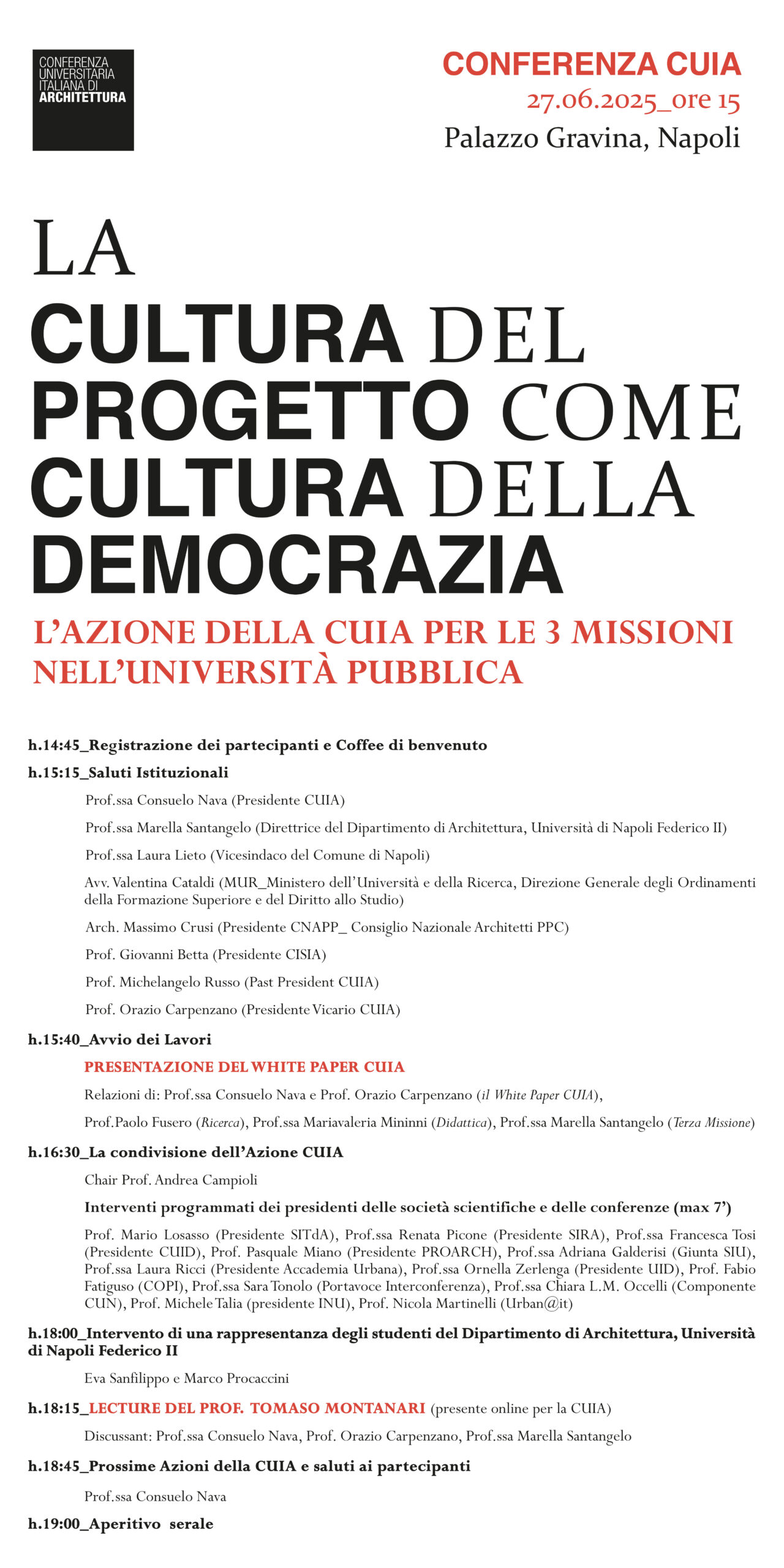 “La Cultura del Progetto come Cultura della Democrazia. L’azione della CUIA per le 3 missioni nell’Università Pubblica”